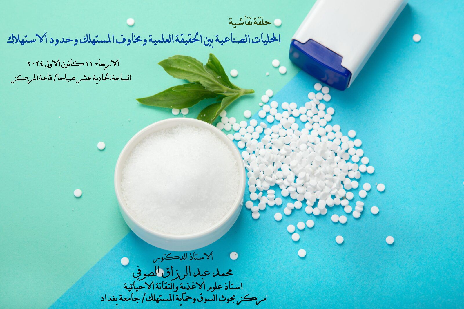 سيقيم مركز بحوث السوق وحماية المستهلك حلقة نقاشية بعنوان (المحليات الصناعية بين الحقيقة العلمية ومخاوف المستهلك وحدود الاستهلاك) التي سيلقيها الاستاذ الدكتور محمد عبد الرزاق الصوفي التدريسي في مركز بحوث السوق وحماية المستهلك/ جامعة بغداد في يوم الاربعاء الموافق 11 كانون الاول 2024 في الساعة الحادية عشر صباحا في بناية المركز.