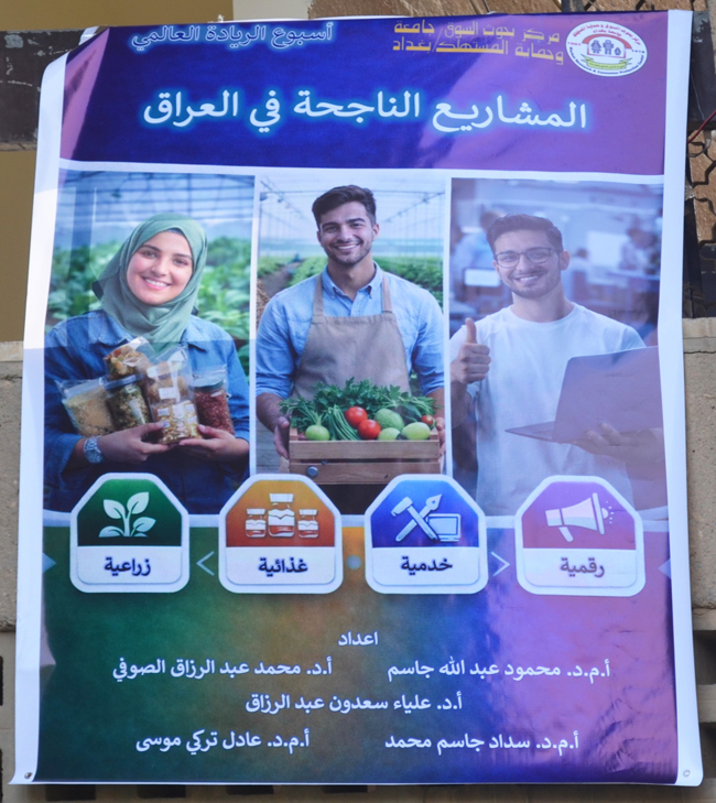 وشهدت الفعاليات مشاركة فاعلة لنخبة من تدريسيي المركز في إعداد البوسترات التوعوية، وهم مدير المركز الأستاذ المساعد الدكتور محمود عبد الله جاسم، والأستاذ المساعد الدكتور سداد جاسم محمد رئيس قسم تقويم السلع وأداء الخدمات، إلى جانب الأستاذ الدكتور محمد عبد الرزاق الصوفي، والأستاذة الدكتورة علياء سعدون عبد الرزاق، والأستاذ المساعد الدكتور عادل تركي موسى، حيث أكد المشاركون أهمية الدور الأكاديمي في تعزيز الوعي الريادي ودعم المشاريع الناشئة.